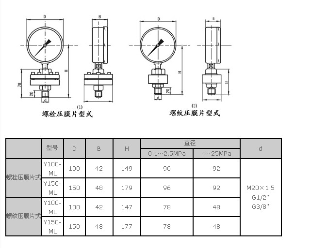 標記1;Y-100B/SR/MF(A)316/4MPa/50-4.0HGJ46