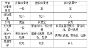 1.流量計的類型。燃氣流量計種類繁多,型號復雜,并且各個廠家的叫法不一,但主要常用有一下類型:皮膜流量計、腰輪流量計、渦輪流量計。其中各大類又分為很多小類。其主要特點見下表:
