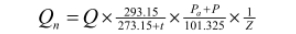 式中:Qn一標準狀態(tài)下的氣體體積量,m³;