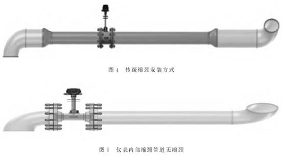 從圖4和圖5可以看出,儀表內(nèi)部縮頸在配管成本、配管安裝的復雜程度、后期的更換以及維護成本上具有優(yōu)勢,可以為用戶節(jié)省大筆材料、人工和時間成本,因此企業(yè)應根據(jù)裝置實際情況選擇合適的內(nèi)縮頸產(chǎn)品。