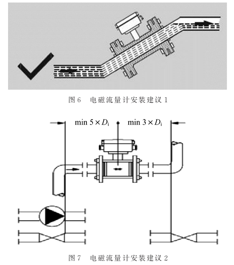 目前大體分為3類典型應用:污水廠、凈水廠及管網(wǎng)。流量計的選擇需要考慮現(xiàn)場的工況與施工要求,現(xiàn)分析如下:新建凈水廠、污水廠及管網(wǎng)在安裝條件允許的情況下,安裝電磁流量計是不錯的選擇,但在安裝中需注意一-些情況。由于電磁流量計的特性,測量介質需滿管,如不滿足滿管條件,請參考圖6的建議。
