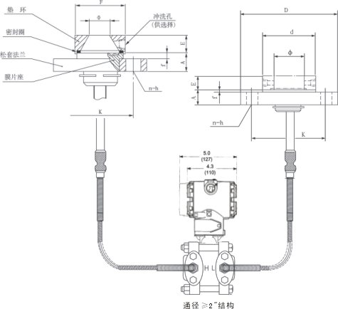 注:1、選用量程代號3時,必須配用通徑為4"法蘭。
